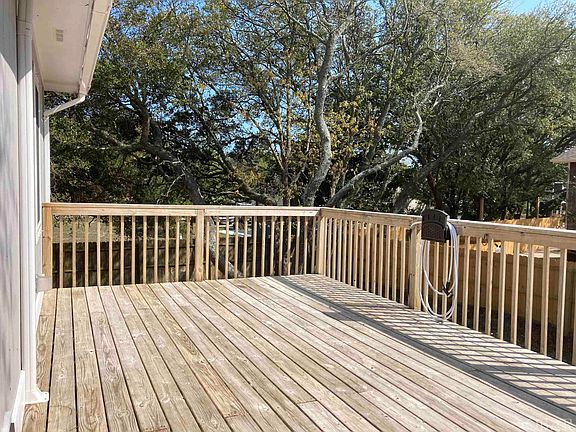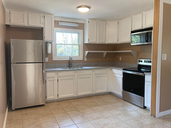 Own your piece of the Outer Banks on this large parcel in First Flight Village. Located on a quiet cul-de-sac, this cute beach box sits on almost a third of an acre in the X flood zone, close to everything in central Kill Devil Hills. Upstairs is an open living area with ceramic tile and generous kitchen with new quartz countertops, new Whirlpool refrigerator and five-burner range. Both bedrooms have have large closets, one with solid oak flooring, the other with an engineered wood floor. The large sun deck on the south side opens into a laundry/mud room, while the north entry leads to a sun room. Upstairs has all Anderson windows. Downstairs has tons of enclosed storage, plus a bonus half bath and stand up shower. There is plenty of space on the ground level to outfit it as a workroom, indoor/outdoor game room or whatever suits your lifestyle. The large lot offers plenty of room for expansion, with current lot coverage at only 15% of the total lot square footage. New FORTIFIED Roof in 2022. New HVAC in 2021.