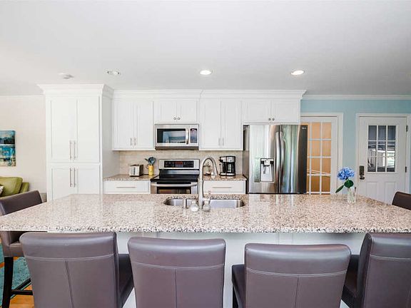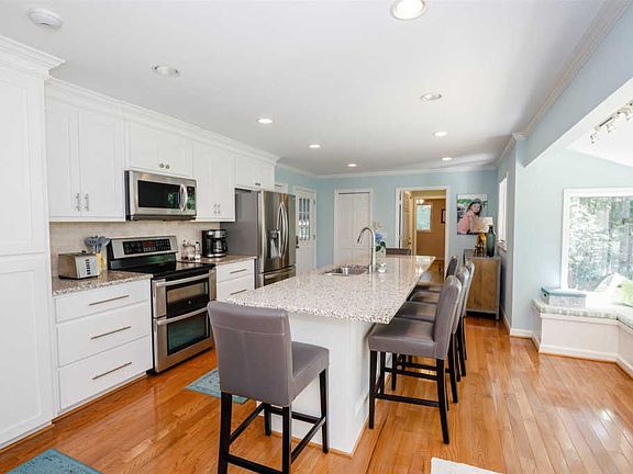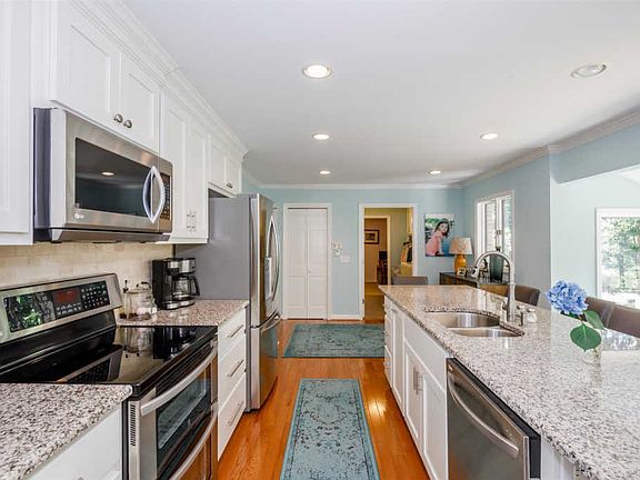- RoomKitchenFeatures: Granite Counters, Kitchen Island, Recessed Lighting, Floors-Hardwood, Backsplash-Tiled, Cabinets-Painted