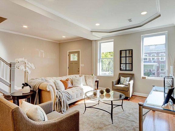 Your new residence awaits you! Nestled in the heart of Baltimore City, this two-story 5 bedrooms/3 & 1.5 bathrooms redesigned brick townhome is aimed to please. The main level upgraded with gleaming hardwood floors, kitchen (waterfall) island, stainless-steel appliances granite counter tops, tray ceilings with recess, pendant, & chandelier lighting. On the upper level is a gorgeous primary ensuite along with 3 of the 5 spacious bedrooms. The sizable lower level has a bedroom and is fully finished. Make an appointment today and get acquainted with your new home.