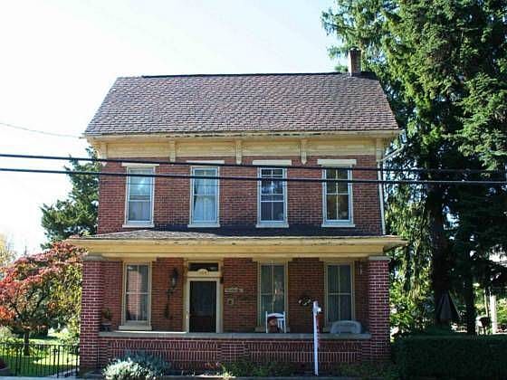 1890's all brick home on Main street in Oley village. This beautifully finished home boasts a modernized eat in kitchen, with mudroom and a full bath just steps away. The living room boasts hardwood floors, built-ins, and a faux fireplace. Three bedrooms on the second floor feature hardwood floors, deep windowsills and and old-world craftsmanship. The third floor has a fourth bedroom or home office, with exposed beams, a dormer and storage space. Out back there is a summer kitchen with a walk...
