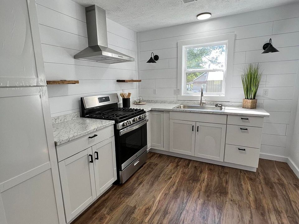 BACK ON THE MARKET, At No Fault of the Sellers. FHA Appraisal came in at Contract price with no repairs requested by Appraiser. Super cute Home on a large lot Totally remodeled 3bed 1 bath home. The home has a kitchen Dining combo, laundry room, large living room. Don't let the square footage fool you. It's a spacious home on a corner lot with a large yard, Mature trees and a nice size shed in a Quiet Neighborhood within walking distance to all the schools.This remodel includes a new roof, chimney removal, all new kitchen remodel with New Arcadia Shaker Style Cabinets including a Pantry, and a lazy Susan, New Allen and Roth Kitchen sink, new printless stainless steel natural gas GE stove with griddle. And vent hood. New Bathroom vanity, new plumbing. New double storm windows and screens installed. vapor barrier installed in crawl space. The yard has been excavated seeded and strawed.Home is scheduled for termite treatment and treatment will carry a 5-year warranty on the home . New LVP flooring throughout, and 2 of the bedrooms have all new carpet, The home has new lighting, drywall, shiplap, and Interior and exterior doors. New Paint throughout the home. Nice size shed for additional storage. There so many additional updates to mention. Book your showing and come take a look.AGENTS, please read agents remarks. Reserved, all staging props in home. Do not sit on the bed.