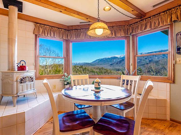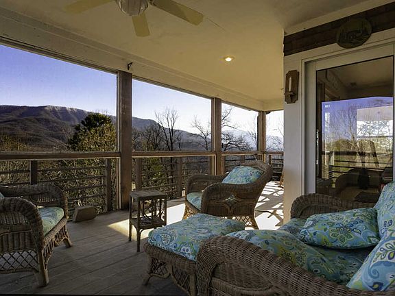 ''Yonder Mountain'' is a wonderful mountain lodge with sweeping mountain views from Cobby Nob, just outside Gatlinburg. This 4 BR, 2.5 BA lodge features panoramic mountain views, walls of windows, wood burning FP w/ floor to ceiling stone surround & French doors opening to the deck & screened porch. Watch the thrill seekers zipline from the mountain tops. Formal dining room opens to the kitchen w/ an island & separate eating nook & Ben Franklin type heater. MBR has en suite w/ his/her closets. 2 BR's are downstairs w/ 3rd BR used as a rec room. Hot tub also located on this level. All appliances, furniture, decorations convey. Adjoining lot available for $50k.