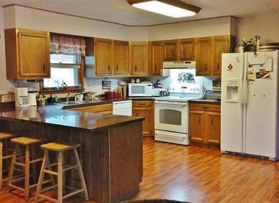 This all electric home sits on a large lot on a peaceful street. There are 3 bedrooms on the main floor in this spacious home. The kitchen is open to the living room and has a nice breakfast bar. You will have no problem finding storage in this here, with a full basement and a huge 4 car attached garage! The laundry is also located on the main floor for modern day convenience! Another great feature of this home is the large wooden deck great for entertaining & relaxing!