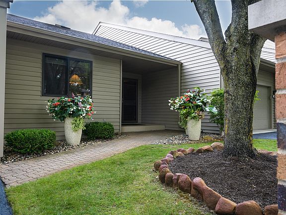 An exquisite, walkout style townhouse, overlooking the 17th hole in the coveted St Cloud Country Club! Enjoy the golf course view from the expansive deck or from the patio just below and experience the ease of low maintenance living in this beautiful home with newer roof, steel siding and underground sprinkling. You'll love the spacious kitchen and both formal & informal dining areas. You'll find two fireplaces, one in the walk out lower family room and the other in the vaulted living room where you'll bask in the views of the full wall of windows, drenching your space in natural light! Slip away to luxury in the primary suite where you'll find a large private bath with separate tub and shower. This fully finished golf course home is the ideal retreat for those ready to step into the low maintenance lifestyle they've dreamed of and onto a beautiful golf course right out the back!