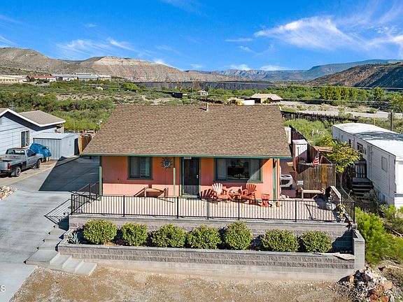Motivated Seller! Charming, well cared for home in the lovely historic area of Clarkdale. Perched on a premium lot, the views are abundant. From the covered front patio, you can see Toozigoot National Monument, just 2 miles away. Looking to the southwest, Jerome is also visible, 6 miles away. Looking North from the beautifully designed covered and fenced back patio, enjoy panoramic views of Sycamore Canyon. This 2 bedroom, 2 bath air-conditioned home has a cozy, well-designed floor plan featuring a spacious kitchen and a large master bedroom with a private bath. New tile flooring throughout makes clean up a breeze. The detached 16X16 air-conditioned music studio can be used as an artist studio, a workout room, or an extra bedroom. The possibilities are endless. The additional Workshop is a bonus, and the shed provides additional storage space. The owners have meticulously cared for this beautiful home, adding upgrades and improvements over time. This is a rare opportunity to own a home in Clarkdale's historic district. No HOA. Some furnishings are available on a separate bill of sale. 5 minutes to the restaurants and shops in old town Clarkdale and old town Cottonwood. Priced to sell.
