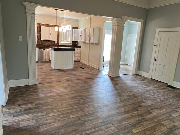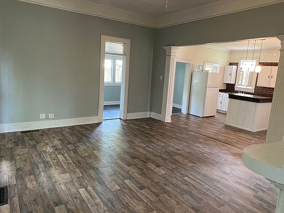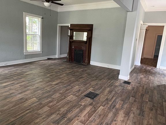 Have you been looking for a two-story house with beautiful gingerbread trim on the front porch? HERE IT IS! This three-bedroom, 2 1/2-bath home has a large living room with a fireplace and a beautiful staircase up to the second floor. The large formal dining room has another fireplace opening to the wonderful kitchen with pretty white cabinets and all appliances. The laundry room is off from the kitchen. Absolutely amazing master bedroom with "on" suite with tile ceramic walls and floors. Two more bedrooms with a 'Jack and Jill" bathroom with ceramic tile walls and wood floors. Tub/shower combo and 2 HVAC. House is sitting on three lots on the corner. Two lots could be sold. Private wood fence. What a find! Too much to mention! This is your ready-to-move-in home.