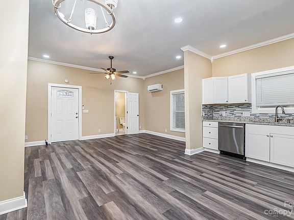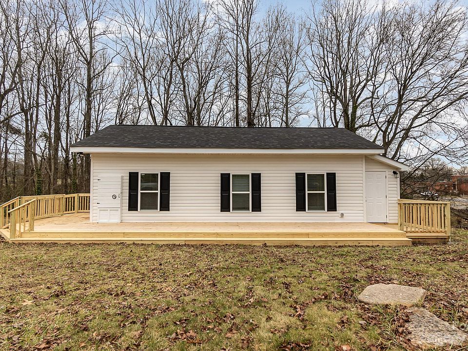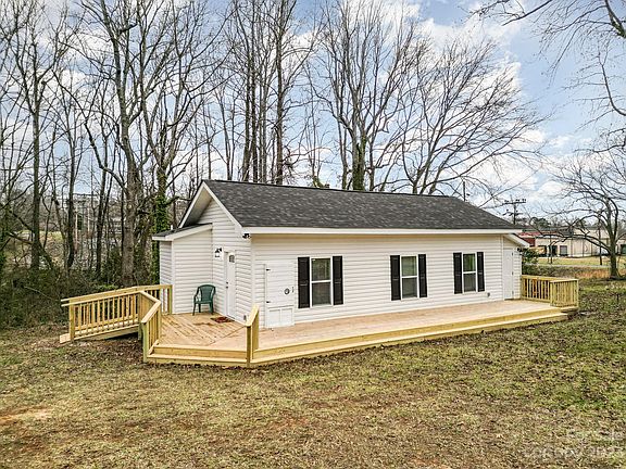 Adorable renovated ranch home on 1/2 acre lot with no HOA in charming downtown Cherryville! This 1 bedrm, 1.5 bath home has an open floorplan w/ 10' ceilings making it feel much larger in size! Features new roof, new windows, new doors, new LVP flooring, fresh paint thruout, new kitchen cabinets, new sink, new range, new countertops, new appliances, new lighting, new bathroom floors & vanities, new hvac, new wrap around deck, new insulation in ceiling, walls & floors + new laundry closet. The living room, kitchen & dining area are in one large space & primary bedrm w/ full bath separate. There is also a 1/2 bath off the living rm. The 1/2 acre lot is partially wooded w/ plenty of cleared open space & privacy. The vinyl siding is a great low maintenance feature! Right down the street you'll find the downtown area with boutique shopping, ice cream, coffee, restaurants, skate park, area parks with basketball & pickelball and so much more! Seller did not pull permits for home renovation.