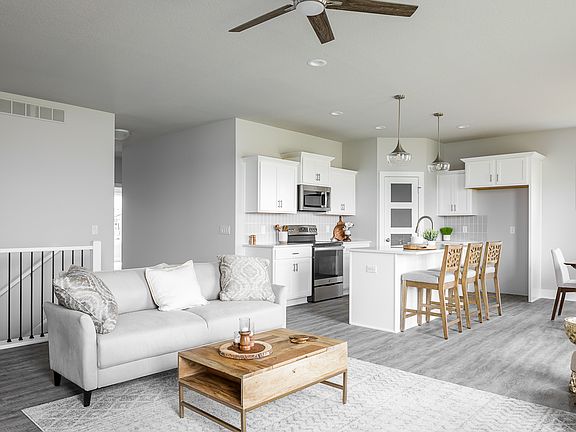 Welcome to Heritage at Grimes and the Amber plan by Tanzanite Homes! This home features 4 bed & 3 baths w/1509 sf on the main floor & 821 finished sf in the LL. Open floor plan w/a gorgeous Kitchen, quartz counter tops, island, walk in pantry, soft close cabinets with crown molding, & SS appliances. The very open great room has a electric fireplace. The Dining Area has a slider with access to covered deck perfect for relaxing on a warm summer's eve. The spacious Master suite has a bath with double vanities, tiled shower and great walk in closet. Also featured on the main floor is a drop zone with lockers conveniently located off the garage, and main floor laundry, that passes through to the master closet. The LL has a large family room w/a wet bar, a guest bedroom, full bath & storage & is sure to please. 3 car garage. Passive radon mitigation system. No closing costs or origination fee through preferred lender.