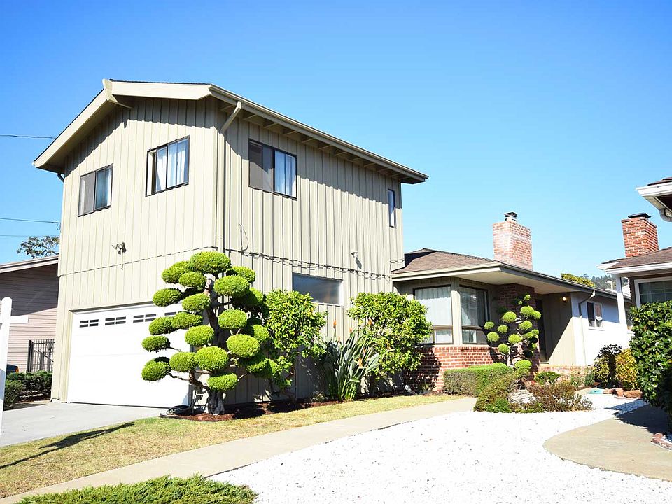 Rarely available 4BR, 3BA contemporary home only two blocks to El Cerrito Plaza BART! Main level open floor plan with gleaming hardwood floors and easy flow from the kitchen to the dining room. Three bedrooms and two bathrooms on the first floor, with a private master suite at the back. Upstairs addition with separate bedroom and bath, perfect for guests, in-laws or home office. Attached two-car garage and storage galore. Botanical setting includes apple and lemon trees, roses and birds of paradise. Only 30 minutes from your door to Embarcadero Station!