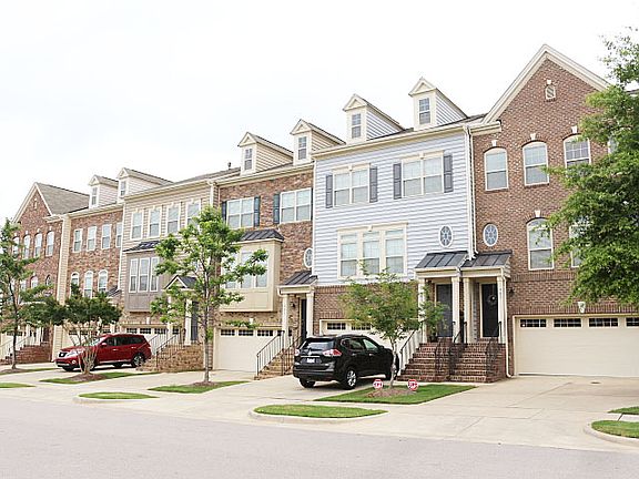 Avail 06/27; small pets OK. Upscale 4 bedroom/2/2 bath townhome w/2 car gar backing up to natural area and walking trail. A curved stairwell greets u when you enter the home. Nicely sized LR w/FP flows into the custom Kitchen w/granite, tiled backspl, 42in cabinets & SS appliances. Hdwd floors in Kitchen & Kitchen nook. Downstairs is a large bedroom/bonus w/sitting area & closet. Walk to comm pool. Easy access to I540, Hwy 55, eateries, shopping etc.