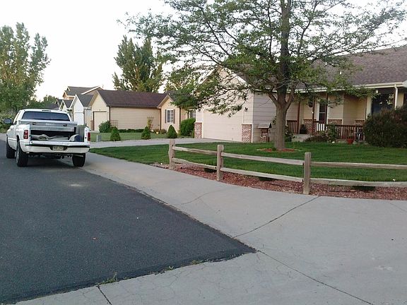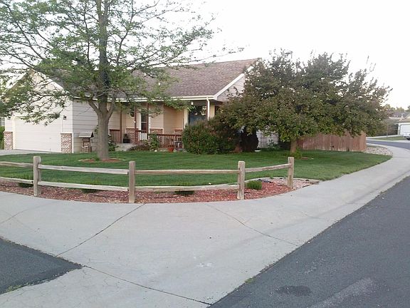 NESTLED ON A LARGE CORNER LOT! Large & inviting covered front porch. Spacious living rm w/ cathedral ceilings. Kitchen w/ oak cabinetry w/ brkfst bar. Bright & cheery dining area. 3 BR & 2 BA. Full bsmnt w/ finished 1/2 bath. Newer furnace & water heater. A/C, humidifier, whole house fan, newer roof, sprinkler system, 14 x 12 deck, privacy fenced yard & a 2-car garage.CARPET AND HOUSE HAS BEEN CLEANED. BRING OFFER!