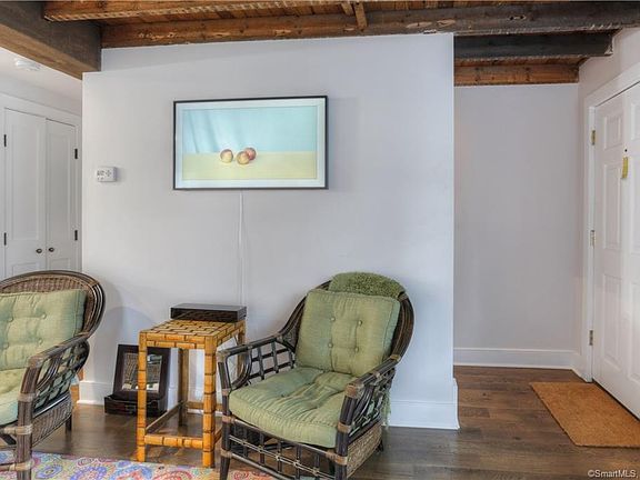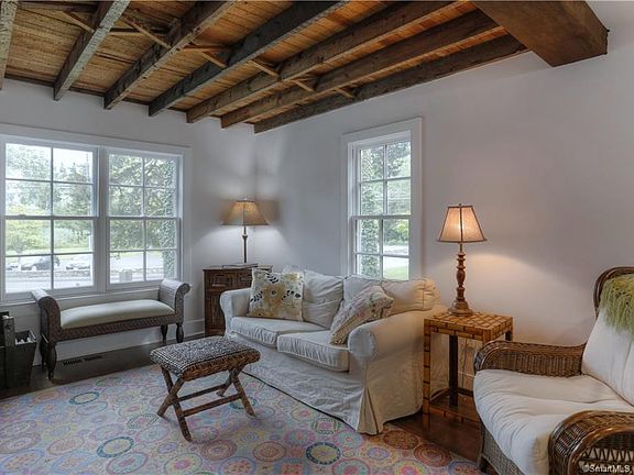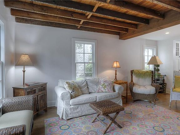 This fully furnished home on a private lane in the very heart of Southport, just two blocks from the Harbour and a mile from Southport Beach, was once the home of celebrated Interior Designer, Albert Hadley. Now fully updated with new kitchen and baths, refinished hardwood floors and cunning features like the floor of pennies in the half bath on the main floor and the exposed beamwork in the Living Room. A scrollwork wrought iron handrail leads up to the second floor with 2 Bedrooms (or a Master and an office?) and a Full Bath. The Laundry is also on this level. The back deck and brick patio enjoy a bath of afternoon sun and then shade at cocktail hour. Southport train station is just a 2 minute walk which puts Grand Central 80 minutes away.