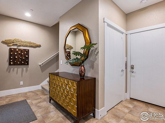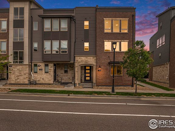 Elegant 3-bed 4-bath end unit townhome with one of the very few private elevators in Superior Downtown. Take your private elevator to the 4th-floor entertainment area with wet bar and two scenic rooftop deck areas. There is a covered dining area overlooking the Flatirons and Longs Peak and an additional open seating area to watch the stars or admire the 360 degree views. The rooftop deck has easy to clean porcelain tiles, pre-plumbed gas line, and a water spigot. The expansive vaulted ceiling with gorgeous skylights lights up the main living areas. The chef's kitchen features a waterfall style quartz center aisle and matching Jennair appliances including double ovens, a gas stove with a stainless Zephyr Hood and a built in microwave. The living area has custom real brick finishes in the kitchen and family room adjacent to the custom built library/office. There is extensive built-in shelving and storage and custom blinds and window coverings throughout. A very special home that is not to be missed!