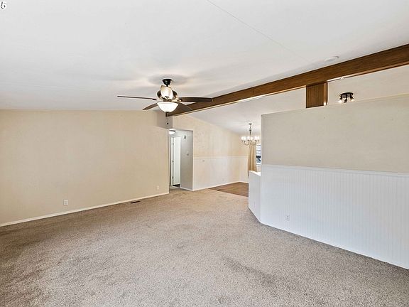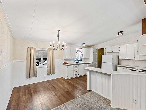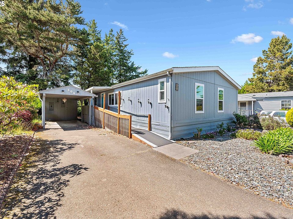 Welcome to 504 Puerto Vista Drive a beautifully updated 3-bedroom, 2-bath manufactured home that proves comfort, style, and affordability can go hand in hand. Located in the desirable all-ages Puerto Vista Mobile Estates in Coos Bay, this home offers nearly 1,200 sq ft of open-concept living with soaring vaulted ceilings and natural light that pours into every corner.Step inside to a layout that feels larger than its footprint, with a seamless flow from living to dining to kitchen. The living area features cozy wall-to-wall carpeting and a ceiling fan for year-round comfort. The kitchen and bathrooms boast durable plank vinyl flooring and upgraded finishes that offer a clean, modern touch.The primary suite includes a walk-in closet and a Jack-and-Jill style bath with a convenient shower/tub combo ideal for relaxing at the end of the day. Two additional bedrooms offer flexibility for guests, home office, or hobbies. A dedicated laundry area with washer and dryer adds everyday ease.But the standout features don’t stop indoors. A covered carport and front entry welcome you home, while the oversized yard is a true bonus complete with a greenhouse for garden lovers and space to stretch out, play, or unwind.This is your chance to own a move-in-ready home in a well-kept community close to shopping, dining, medical services, and coastal recreation. Whether you're downsizing, just starting out, or seeking a low-maintenance lifestyle, this gem is ready for you.Act fast homes like this are in high demand and don’t stay on the market long!Residents of Puerto Vista Mobile Estates enjoy access to community amenities such as a playground, gazebos, and recreational areas. The community is conveniently located near beaches, shopping centers, medical facilities, and other local attractions. mhvillage.comThis move-in-ready home combines comfort, convenience, and coastal charm. Don't miss the opportunity to make it yours! Space rent is $600 a month