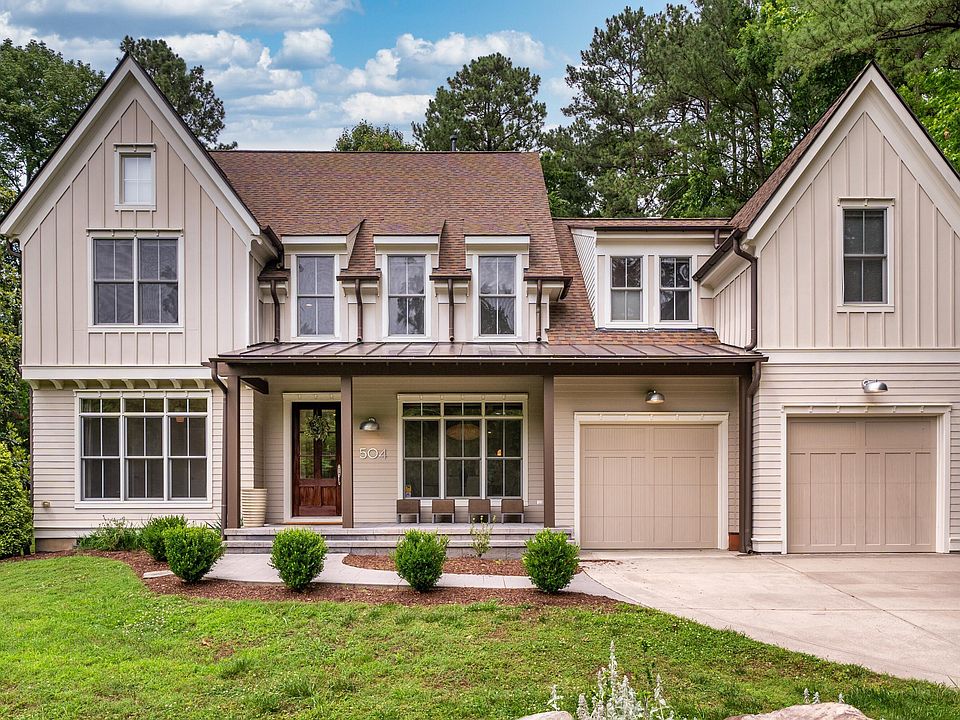 Tranquil Charm Meets Modern Luxury: Discover 504 Rockgarden! A wide front porch, gourmet kitchen, and spa worthy primary bath set the stage for comfort and tranquility just moments from downtown Carrboro. With 5 bedrooms and 5 full baths, in a delightful natural setting, this is the oasis you've been waiting for. Inside, you'll discover a custom-built mantle and shelves, adding a touch of craftsmanship to the living space. The gourmet kitchen is a chef's dream, featuring stainless steel appliances, granite countertops, and a huge island with a luxurious marble top. With a bonus room and finished 3rd floor with a full bath, there's ample space for work, play, or bedroom #5. The screen porch provides the perfect spot to soak in the tranquility. Experience the perfect balance of brightness and warmth, openness and coziness within the home, creating an ideal space for entertaining friends or curling up with loved ones. Don't miss the opportunity to make this peaceful retreat your own.