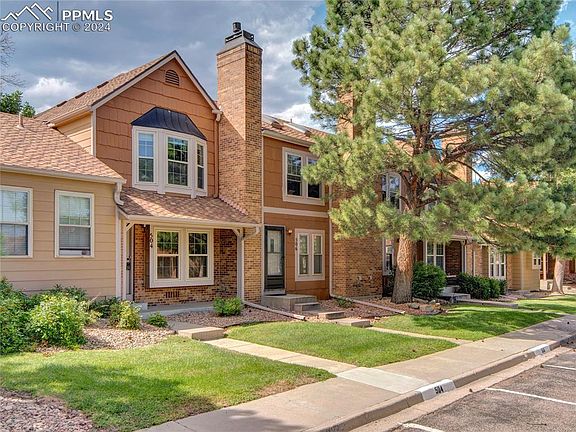 Discover your new home in the charming Discovery At Ravencrest neighborhood! This adorable 2-bedroom, 2-bath townhome boasts a 2-story floor plan, offering versatility & style. The spacious master bedroom with a large upgraded closet and adjoining bathroom with a tub/shower combo is a perfect retreat. The loft with vaulted ceilings serves as a bedroom or spacious home office. You'll love the cozy brick fireplace with a gas insert & blower and upgraded double-pane vinyl windows throughout the home are perfect to keep you warm on chilly Colorado evenings. The backyard is fenced for privacy or a pet. Convenience is key with an assigned parking space right in front of your home. appreciate the highly-rated District 20 schools, providing top-notch education. And the community pool is a perfect way to cool off on a hot summer day! Location is everything! Easy access to Interstate 25 & Woodmen Blvd ensures smooth commutes. Shopping & dining options are abundant, making errands & leisure activities a breeze. This townhome offers the perfect blend of comfort, style & convenience, making it an excellent choice for anyone looking to for a home on the west side. Experience the best of Colorado living with this delightful townhome. Don't miss your chance to make it yours! Photos have been virtually staged.
