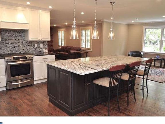 One look at this elegant custom 6BR, 3.1BA center hall brick colonial and you will be SOLD! This home is an absolute standout thanks to a no-expenses spared renovation that was completed in 2015. The large and flowing floor plan includes a designer gourmet granite & stainless kitchen which opens directly to and inviting family w/fireplace & breakfast room, formal dining room w/butler's pantry, living room with brick fireplace and a bright sun room. The second level includes a large master w/his and hers closet & Carrara marble bath with a walk-in rainfall shower and frameless glass enclosure. In addition, there are five generously sized bedrooms and two updated baths with double vanities. Other noteworthy features include: gleaming hardwoods & custom moldings, cedar closet & an additional laundry hook up on the second floor, recessed lighting, professionally painted interior, basement with outside entrance, rear entry garage, and a new solar installation on the rear roof. Situated on a level lot on a private & quiet tree lined street in the heart of Woodbrook. You are minutes to everything!