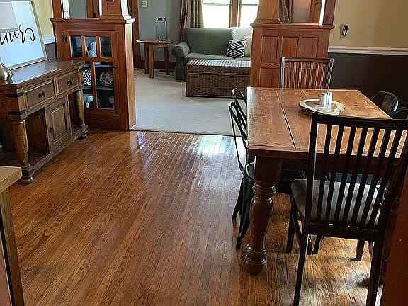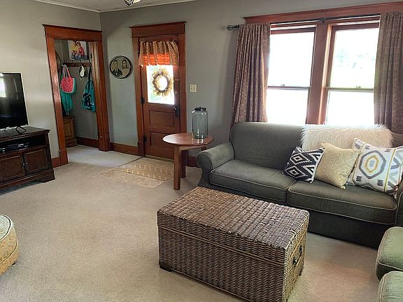 Move-in ready 3bd/2ba home on a large shaded corner lot. Home has 1bd/1ba downstairs and 2bd/1ba upstairs. You are greeted by a 19ft x 8ft covered porch as you approach the front door. You then walk into the large 19ft x 13ft living room with lots of natural light and original wood trim which is throughout the home. The 12.5ft x 12ft dining room with hardwood floors is divided from the living room by beautiful built-in display cases. The kitchen was renovated in 2000 with a dishwasher added as well as extra cabinets and countertops. Adjacent to the kitchen is a large butler's pantry with ample storage. The downstairs bedroom measures 10ft 9in x 10ft 5in. The bathroom downstairs was updated last fall with new flooring, trim, and toilet. Upstairs is a 14ft 2in x 9ft 10in bedroom with a walk-in closet. Across the hall is another bedroom that measures 13ft 10in x 9ft 1in, this room has 2 large 9ft x 4ft walk-in closets. The upstairs bath which was completely redone last fall with new shower/tub combo, vanity, toilet, and flooring is 12ft 7in x 6ft 1in. The upstairs bath has a large walk-in closet that is 9ft 10in x 4ft 4in. The unfinished basement has a large open storage area measuring 21ft x 18ft and includes washer and dryer hookups. There are also 2 smaller storage rooms as well as a furnace room that is 21ft x 8ft 9in. This home also includes an attached 1 car 21ft x 11ft garage. The exterior of the home was repainted last fall and also was reroofed with architectual 40 year shingles last fall. The 24ft x 10ft rear deck was stained in June. The yard is an oversized lot that includes mature trees that provide ample shade, trees were trimmed last year. This home is a great home for a smaller family or couple looking to downsize. Please call with questions or to set up an appointment to tour the home. (Serious inquiries only, no owner finance or rent to own)