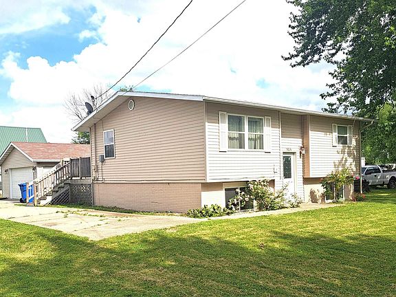 This split foyer home with two car garage is located in the South end of Lovilia. Spacious four bedroom home has two bathrooms (one on each level) and many updates. The back deck outside of the kitchen adds to the top level for grilling and patio chairs. Patio deck space leads to back yard to a two car detached garage built in 2012. Additional parking on North side of home. One of the lower level bedrooms was used for a family room by this owner. Separate laundry room with deep utility sink and additional utility room are both on lower level. This home has been well taken care of.