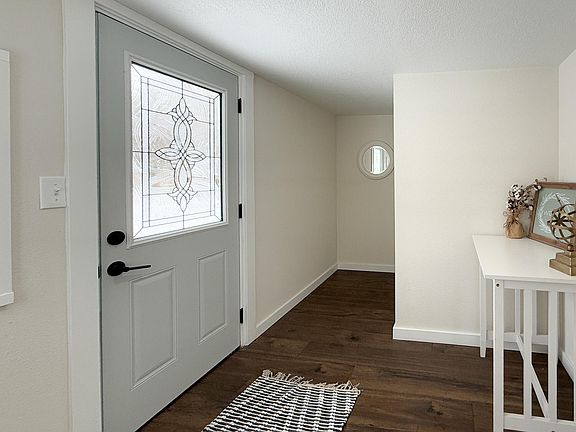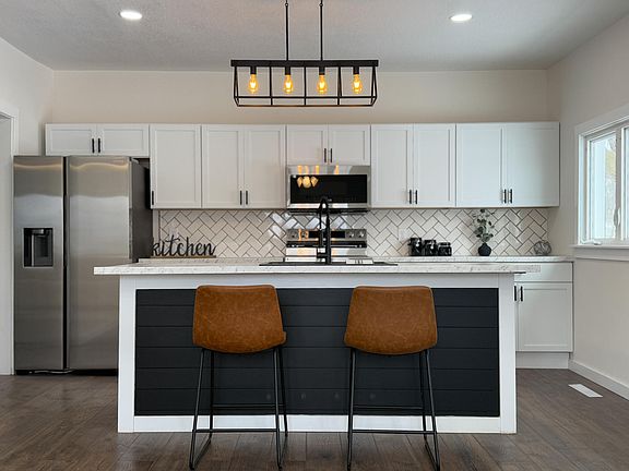 Welcome to this beautifully remodeled, one-level home, situated on a roomy corner lot with unbeatable curb appeal! Every inch of this property has been meticulously updated, including a new roof, siding, and sleek black gutters. Custom shutters, modern lighting, and both front and back patios add an extra layer of charm to the exterior. Step inside to a spacious entryway, perfect for storage solutions and a convenient drop zone. The open-concept main floor seamlessly connects the large living room—filled with natural light—to the stunning custom kitchen. Featuring brand-new stainless steel appliances, cabinets, countertops, and a striking herringbone backsplash, this kitchen is a dream for meal prep, entertaining, or simply relaxing at the island. No detail was overlooked in the renovation. With new flooring, doors, trim, drywall, paint, and fixtures throughout, the home feels fresh and modern. Enjoy efficient living with not only the new roof but the brand new AC and furnace too! The bedrooms are generously sized, providing comfort and privacy. The bathroom boasts a large vanity with LED lighting above, a beautifully tiled shower/tub, and plenty of storage space. A spacious laundry room offers room for extra storage or a secondary drop zone and leads out to the private second patio—perfect for relaxing. Designed for convenience, with everything you need on one level; An efficient choice for those starting out, investing, or seeking their forever home. Start your newest adventure with this property and don't let the moment pass you by - call today!