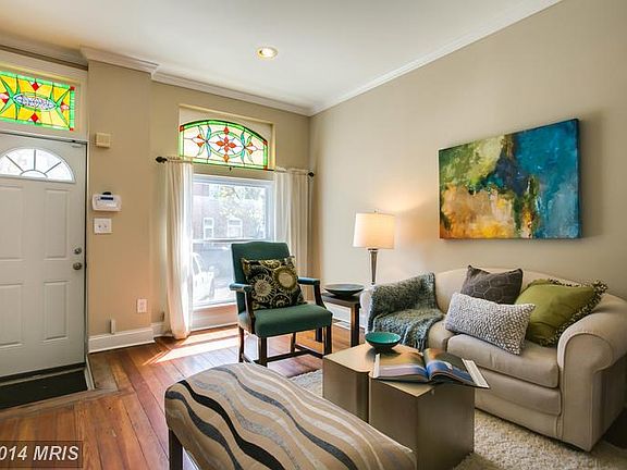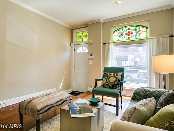 CHARMING ALL BRICK MARBLE STEP CANTON ROW HOME JUST STEPS FROM PATTERSON PARK. LARGE BRIGHT AND OPEN FLOOR PLAN ON MAIN LEVEL WITH HARDWOOD FLOORS. FINISHED BASEMENT W/ HALF BATH AND NEW CARPET,NEW RUBBER ROOF. TWO GOOD SIZE BEDROOMS UPSTAIRS, WOOD FLOORS AND FRESH PAINT. LARGE REMODELED BATH WITH SEPARATE SOAKING TUB AND STAND UP SHOWER. SOME NEW WINDOWS..ASK ABOUT POSSIBLE PARKING PAD