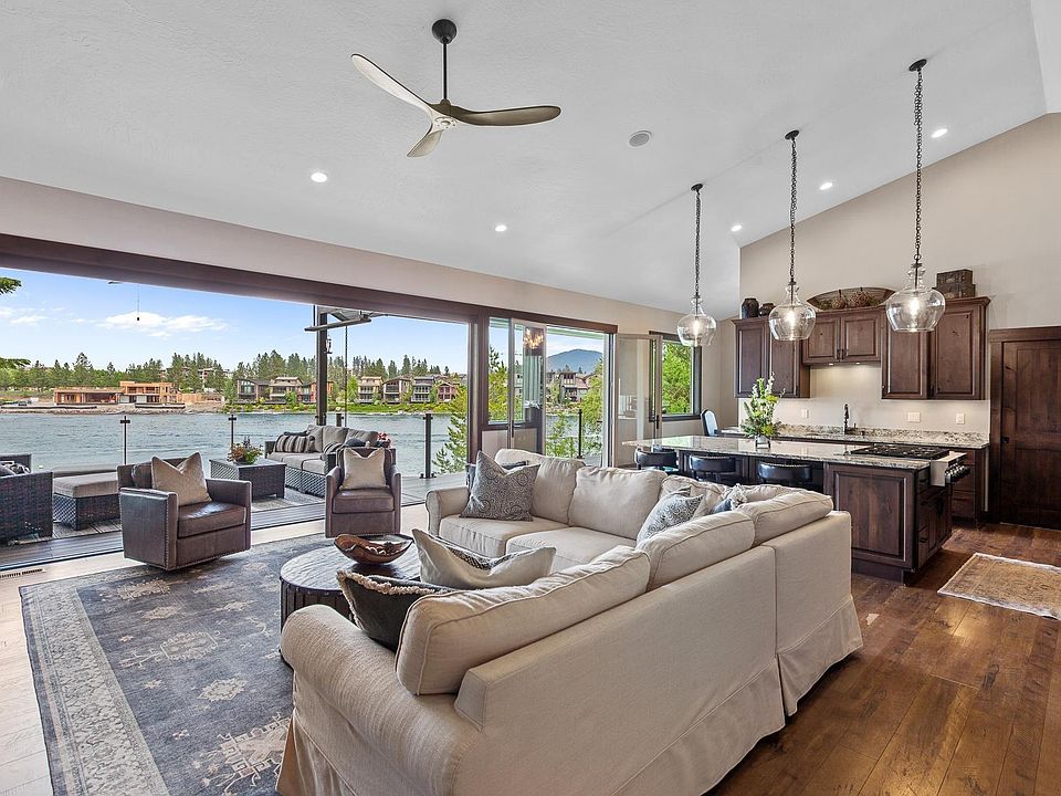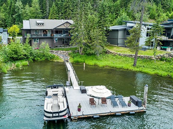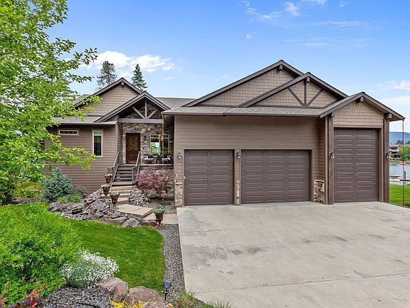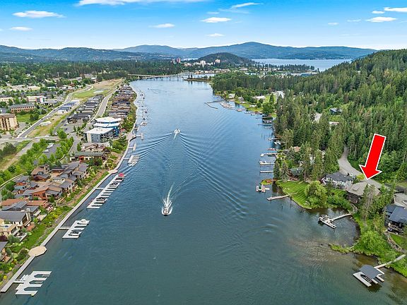 Spokane River waterfront home located only 5 min from downtown Coeur d'Alene with end of the road privacy boasting 358 ft of river frontage including a dock in your very own private cove. This home is made for both entertaining and everyday living. Revel in an open floor plan, high ceilings, and a chef's grade kitchen with a walk in pantry. The great room and kitchen overlook the water and features a 15 ft Nano wall that opens up to the heated covered deck with hot tub. Also included on the main floor are formal dining, laundry, 1/2 bath, and the master suite with deck access. Lower level has 3 bedrooms, 2 baths, workout/office/5th non-conforming bedroom, and a family room with gas fireplace. The downstairs provides access to the landscaped backyard and shoreline. Oversized 4 car garage includes a 14'RV door with hookup. As a bonus, under the garage is an additional 1496 sq ft of storage with a garage door for all those water toys. Waterfront living at its best! No HOA or CC&R's