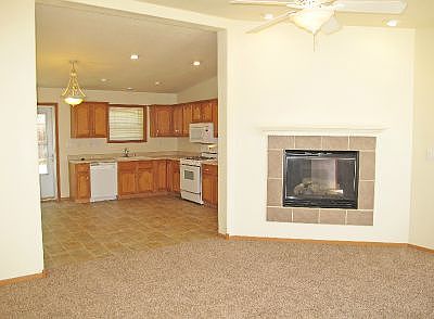 Check out this updated 3 bedroom, 2 bathroom ranch attached single-family home. It has been recently updated with new paint and carpet throughout!The bright and open floor plan offers a spacious living room with a corner gas fireplace. The living room is open to the kitchen with light oak cabinets and all white appliances, including gas range and refrigerator. The kitchen is vaulted and has access to the backyard and deck. You will also find an additional casual dining area. The vaulted master bedroom has an attached full bath and walk-in closet. There are two additional vaulted bedrooms, and a second full bath with linen closet. The main floor laundry room with washer/dryer hookups has cabinet and shelving storage, as well as a closet.This home fronts to a large park, and has a private fenced and gated yard with an inviting 9.5x8 foot deck. The two-car attached garage has a service door and natural light.