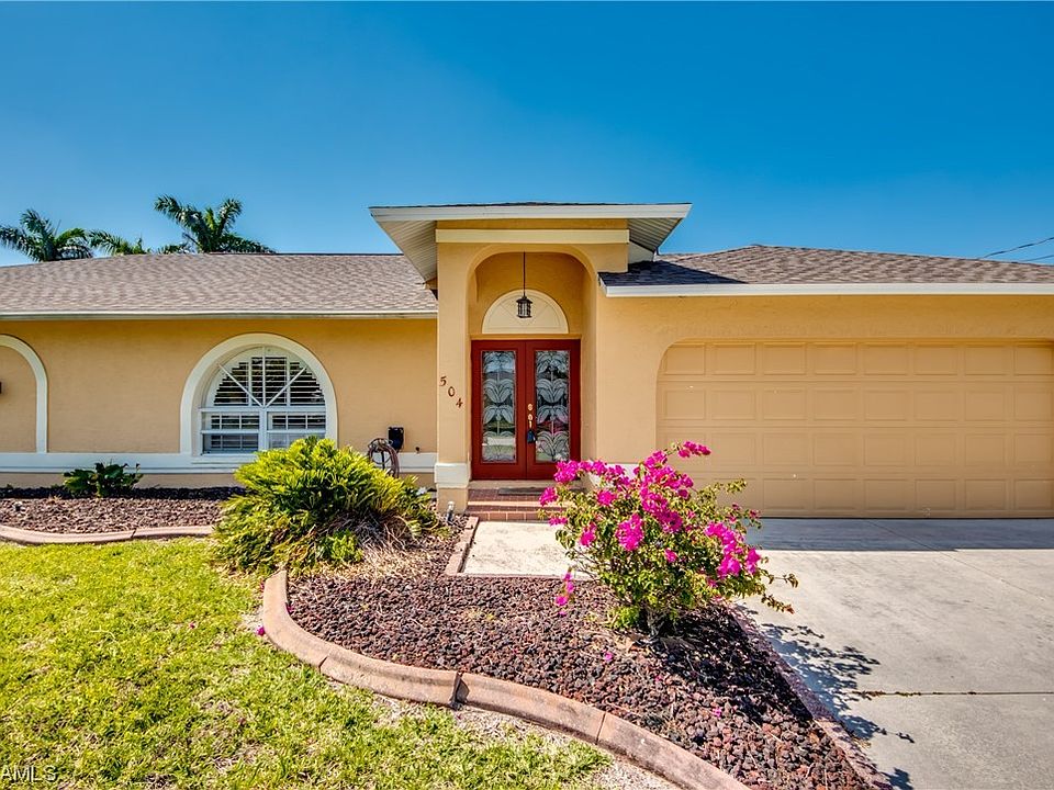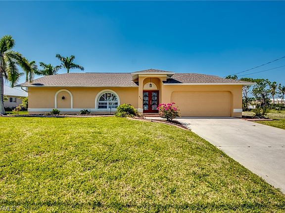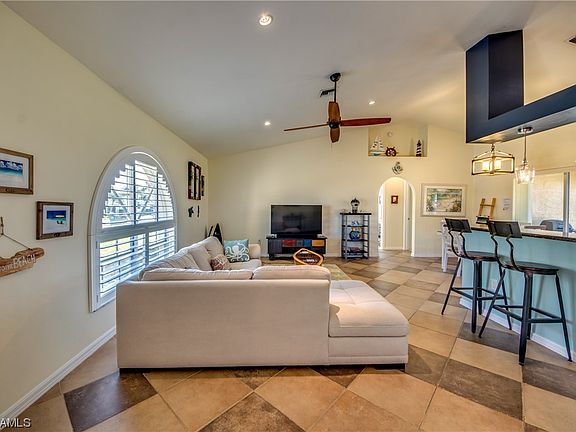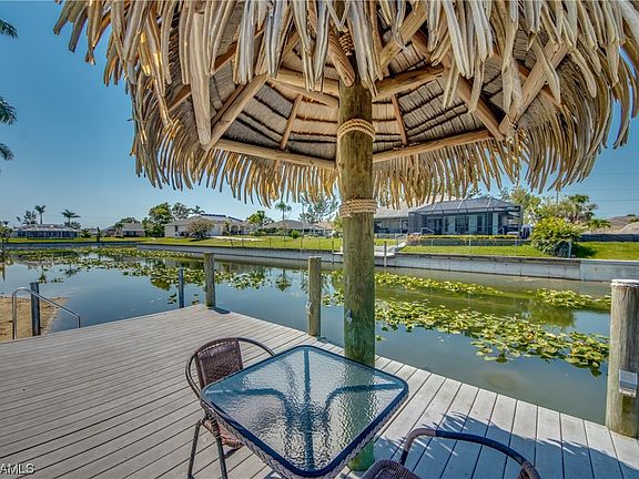 Location, location, location. Live the SOUTHWEST FLORIDA LIFESTYLE in full gear here! Everything you want to do is in reach from this location! This waterfront home is BEAUTIFULLY UPDATED & on a CHAIN OF LAKES that makes this freshwater location so appealing! Bring your boat, jet ski, kayak or canoe. Enjoy them all in your backyard. A short drive to nearby Gulf Access boat ramps too. This immaculate home has SO many updates: BRAND NEW 2023 DIMENSIONAL SHINGLE ROOF, beautiful updated kitchen with 36” maple quality cabinets with crown molding, granite counters, SS appliances, updated bathrooms, cathedral ceilings, pocketing slider, inside laundry, hurricane reinforced garage door, security & sprinkler systems. Greatroom style floorplan with split bedrooms. Plenty of room to add a swimming pool. Highly desired SOUTH EXPOSURE for optimal sunshine on your new pool and a bright and light home interior. At the water you will enjoy an oversize Trex dock with shaded tiki sitting area PLUS a Kayak dock for ease in boarding. NO flood insurance required here! NO HOA dues! Super convenient location to everything, but tucked away from the hustle and bustle! You are destined to fall in love here!