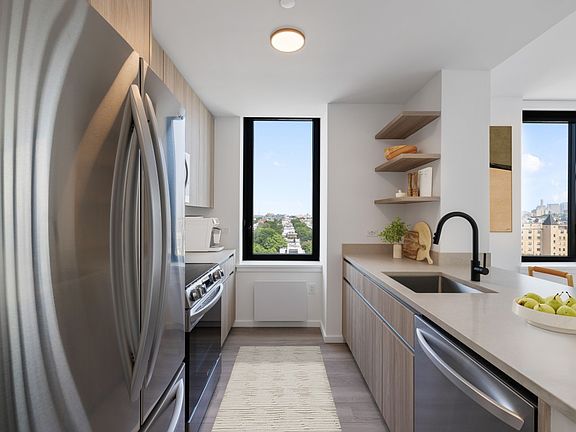 Amazing Two Bedroom Two Bathroom with BALCONY Available Now Now Offering 2 Months Complimentary on a 14 Month Term Welcome to Society Brooklyn! Modern Elegance with Iconic Views on Brooklyn's newest Waterfront Esplanade! Discover a new level of luxury at Society Brooklyn, where urban sophistication meets modern comfort along Brooklyn's newest waterfront esplanade. Nestled at the intersection of Carroll Gardens and Park Slope, our residences offer an unparalleled lifestyle designed for those who crave both style and substance. Our thoughtfully crafted residences blend sleek, modern finishes with warm, livable design, perfecting the balance between elevated aesthetics and everyday functionality. Expansive windows flood each home with natural light, while select units offer breathtaking skyline and canal views that bring the beauty of Brooklyn right into your living room. Residences feature: Spacious open concept layouts Custom black oak kitchen with premium stainless-steel appliances LG in-unit washer/dryer Oversized windows and wide-plank flooring Spacious Bathrooms with LED mirror light Window roller shades: white 5% light filtering with blackout in bedrooms Amazing Views Signature Amenities Fitness & Wellness: Stay active in our expansive modern fitness center, including: Cardio studio Yoga & meditation studio Training floor with a wide range of new Technogym strength and cardio equipment Ditch the private gym membership. We've got you covered for any workout need. Children's Playroom Co-Working Hub: Multiple private offices available 24/7 for residents Designed to facilitate a comfortable and convenient work-from-home without the need to be in your home Unwind or connect in multiple resident lounges, designed for both social gatherings and quiet relaxation. Our sprawling outdoor amenity deck is your warm-weather escape: Resort-style pool with sundeck Pool bar & fire pits BBQ grills with al fresco dining setups Outdoor yoga, fitness, and lounge zones Experience modern elegance with iconic views Rooftop terrace offering panoramic, 180-degree city views Many units boast stunning skyline views Daily Convenience Attended parking garage Secure bike storage Package room & concierge services 24/7 Lobby Concierge Waterfront Park & Esplanade Access to an expansive waterfront park and esplanade with landscaped walking paths, seating areas, and stunning views A vibrant gathering place with dining options, shops, and embracing the arts community Equal Housing Opportunity. Photos, Videos, and/or 3D tours may reflect a similar unit rather than the specific listing.