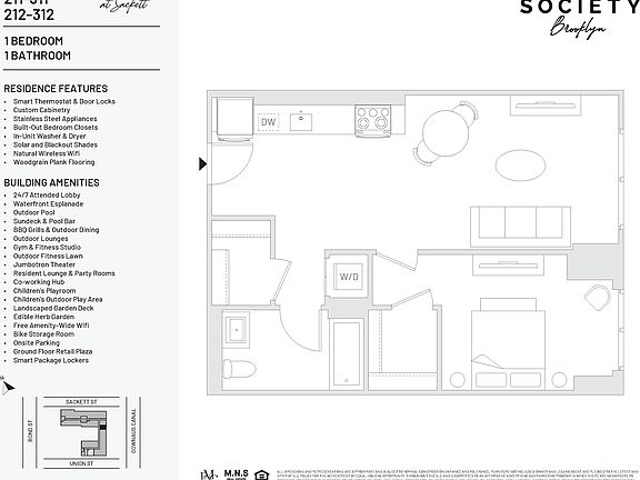 Amazing One Bedroom One Bathroom Available Now! Now Offering 3 Months Complimentary on a 17 Month Term Welcome to Society Brooklyn! Modern Elegance with Iconic Views on Brooklyn's newest Waterfront Esplanade! Discover a new level of luxury at Society Brooklyn, where urban sophistication meets modern comfort along Brooklyn's newest waterfront esplanade. Nestled at the intersection of Carroll Gardens and Park Slope, our residences offer an unparalleled lifestyle designed for those who crave both style and substance. Our thoughtfully crafted residences blend sleek, modern finishes with warm, livable design, perfecting the balance between elevated aesthetics and everyday functionality. Expansive windows flood each home with natural light, while select units offer breathtaking skyline and canal views that bring the beauty of Brooklyn right into your living room. Residences feature: Spacious open concept layouts Custom black oak kitchen with premium stainless-steel appliances LG in-unit washer/dryer Oversized windows and wide-plank flooring Spacious Bathrooms with LED mirror light Window roller shades: white 5% light filtering with blackout in bedrooms Amazing Views Signature Amenities Fitness & Wellness: Stay active in our expansive modern fitness center, including: Cardio studio Yoga & meditation studio Training floor with a wide range of new Technogym strength and cardio equipment Ditch the private gym membership. We've got you covered for any workout need. Children's Playroom Co-Working Hub: Multiple private offices available 24/7 for residents Designed to facilitate a comfortable and convenient work-from-home without the need to be in your home Unwind or connect in multiple resident lounges, designed for both social gatherings and quiet relaxation. Our sprawling outdoor amenity deck is your warm-weather escape: Resort-style pool with sundeck Pool bar & fire pits BBQ grills with al fresco dining setups Outdoor yoga, fitness, and lounge zones Experience modern elegance with iconic views Rooftop terrace offering panoramic, 180-degree city views Many units boast stunning skyline views Daily Convenience Attended parking garage Secure bike storage Package room & concierge services 24/7 Lobby Concierge Waterfront Park & Esplanade Access to an expansive waterfront park and esplanade with landscaped walking paths, seating areas, and stunning views A vibrant gathering place with dining options, shops, and embracing the arts community Equal Housing Opportunity. Photos, Videos, and/or 3D tours may reflect a similar unit rather than the specific listing. *Price shown is Base Rent. Residents are required to pay: At Application: Application Fee ($20.00/leaseholder, nonrefundable); At Move-in: Refundable Security Deposit:$1,000 for qualified applicants and up to one months rent/unit); Monthly: Community Amenity Fee ($95.00/leaseholder- optional); Electric-3rd Party (usage-based). Please visit the property website for a full list of all optional and situational fees. Floor plans are artist's rendering. All dimensions are approximate. Actual product and specifications may vary in dimension or detail. Not all features are available in every rental home. Please see a representative for details.