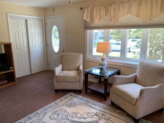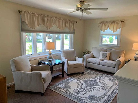 Cute, Clean, Turnkey Ranch on Corner Lot located close to bay, ferry, restaurants and shopping. Home has been renovated and expanded to include a great room and second bath, skylights, high hats, two fireplaces, tiled bathrooms, central AC, wall to wall carpets. Kitchen has newer cabinets, eat in dining and a laundry closet with utility sink. Great room is filled with light with large windows, patio doors, two skylights and gorgeous brick wood burning fireplace. It also has a large desk area and pantry. Great room is so big it could easily be partially closed off for a third bedroom. Living room is light filled with a large Bay Window and gas fireplace. Fabulous curb appeal, front patio, Belgian block sidewalk, two car driveway, vinyl siding, front and back retractable awnings, wrap around composite deck, shed and fully fenced in yard. Being sold fully furnished minus personal items.