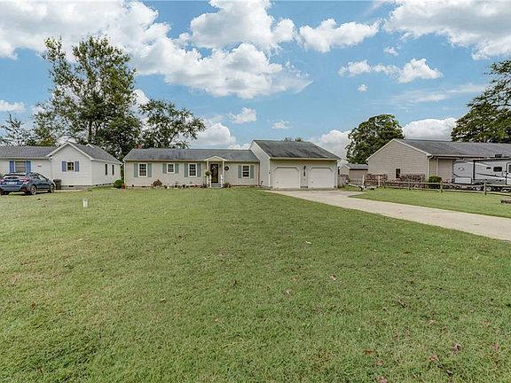 The River is Calling - Piankatank River 3 bedroom, 3 bath ranch perfect for weekend or year round living. Everything you need right here with deep navigable water, dock with 2 boat lifts, wide views, rip rap shoreline, large waterside deck & no flood insurance required! Paved drive, 2 car garage with workshop & storage spaces with plenty of room for your river toys. Comfortable floor plan with private Master Suite, spacious Living Room, Kitchen & Dining area - views from nearly every room! Golf cart community with amenities & activities you can join or do your own thing. 18 hole golf course with pro shop & grill just around the corner. Fish, crab & swim at your back door!