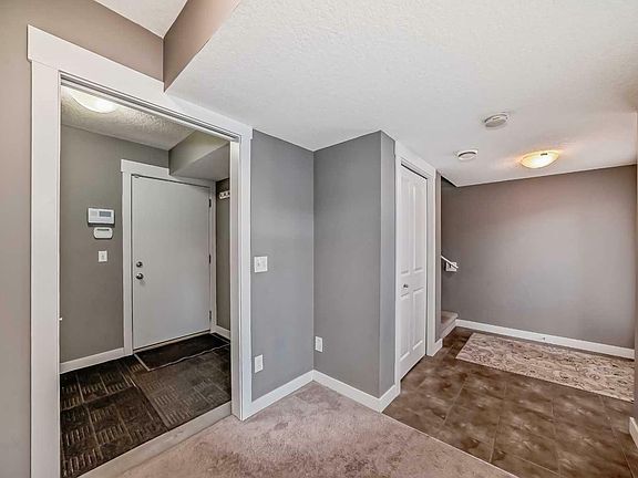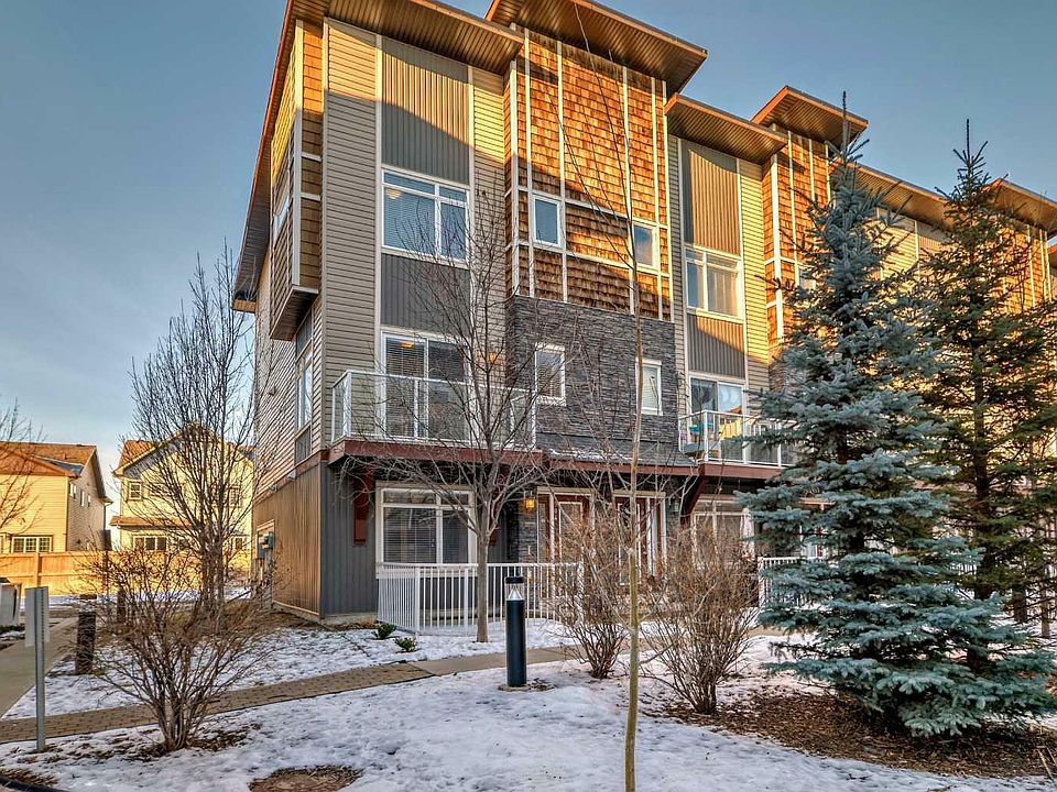In the heart of Skyview Ranch this immaculate End Unit Townhome has only ever been owner occupied. With a courtyard in the front and no neighbors behind this meticulously maintained and cared for home boasts over 1550 sqft of fully developed living space. The luxurious open concept main floor is nothing short of spectacular. Featuring beautiful hardwood floors throughout, high-end finishes, 9 foot ceilings, a modern kitchen with granite countertops, center island, a formal dining area, two piece bathroom with a large family room leading out to your own balcony. The large windows positioned throughout the home invites loads of natural light. Upstairs you will find your laundry area just steps away from the two large master bedrooms that both include a 4 piece master en-suite and large walk-in closets. The spacious double-heated garage is a standout feature of the home, providing a warm, comfortable space to park your vehicles during the cold winter months with guest parking conveniently located just steps away. The stunning landscapes, scenic parks and breathtaking views of the Rockies come together to create the perfect lifestyle in Skyview Ranch.