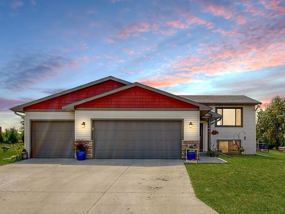 Bright and open, 4 bedroom, 2 bath, 3 car garage split located in quiet neighborhood! The main floor boasts a kitchen with lots of storage, stainless steel appliances, adjacent dining room with access to backyard, large living room, primary with pocket door to main floor full bath, 2nd bedroom, all with ample closet space! The lower level has a wide-open family room, 2 more bedrooms, 3/4 bath and laundry room with extra storage. Outside offers a heated/insulated 3 car attached garage, storage shed, and large fenced in yard with no back yard neighbors.