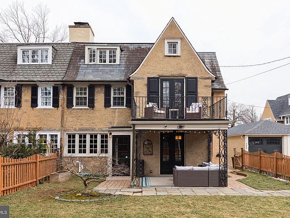 Nestled in the sought-after neighborhood of Wyndmoor, 504 Spring Lane seamlessly blends timeless charm, modern upgrades, and eco-friendly tech. This luminous 1920s twin home, just a short stroll from the Chestnut Hill East SEPTA stop and the vibrant shops and restaurants of Chestnut Hill, is located in Montgomery County and the coveted Springfield Township School District. The home is meticulously maintained and move-in ready, featuring abundant natural light, a spacious open concept first floor, hardwood floors, a three-car driveway, detached garage, covered patio, fenced yard, and 2nd floor balcony. The 1st floor features a spacious living room with a new electric fireplace and a wall-mounted large screen, high-def, smart TV, large dining room, powder room, and upgraded kitchen equipped with new Charleston Oak scratch/stain resistant flooring, new refrigerator, quiet 3-level Bosch dishwasher, large island, subway tile backdrop, pantry, wet bar, new storm door with retractable window, and access to the side patio. Ascend the skylit, square corkscrew, hardwood staircase to long hallway, first bedroom, master bath, linen closet, and large 2nd floor suite with adjoining dressing room, ample closet space, and balcony overlooking the front yard. The 3rd floor has a cedar storage closet, large, easy-access, unfinished attic, two additional bedrooms, one serving as the guest room with a large armoire and the other as a spacious home office with built in bookshelf and large closet, and the recently renovated bathroom with beautiful, all-glass, shower. The partially finished basement, fully waterproofed with a French drain, offers versatile living, workout, and storage space, a large closet, laundry facilities including standup washer and dryer, and a renovated egress to the side patio. Enjoy the peace of mind of having reenforced solid wood doors, Vector-monitored security system with remote access, Nest video cameras and doorbell covering the driveway, front yard, and side patio, a Yale Assure Lock 2 w/ Wi-Fi on side door, and two Nest electronic thermostats.