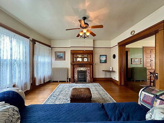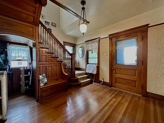 PRICE IMPROVEMENT! Large 4 bedroom/1.5 bath Victorian home takes you back to the turn of the 20th century, complete with original hardwood floors, large solid wood moulding, pocket doors, bay windows, built-in cabinetry throughout and original hardware. Classically tall ceilings make the home feel even bigger than its 2542 sq ft. The master bedroom is large with secondary area that can be your sitting area, walk-in closet, or could be sectioned off for a 5th bedroom. Walk up attic is large and open, could be a finished 3rd story. Beautiful fireplace with intricate detail that grabs your attention. Hardwood floors throughout main floor, but also on 2nd floor under the carpet! Walk-in 2nd floor hallway closet with built-ins. Laundry right off rear entry. Detached 2.5 car garage. New roof, fascia, driveway, and laundry in 2022. Shaded rear deck in 2023. Water softener in 2024.