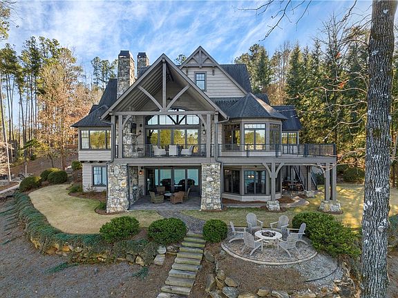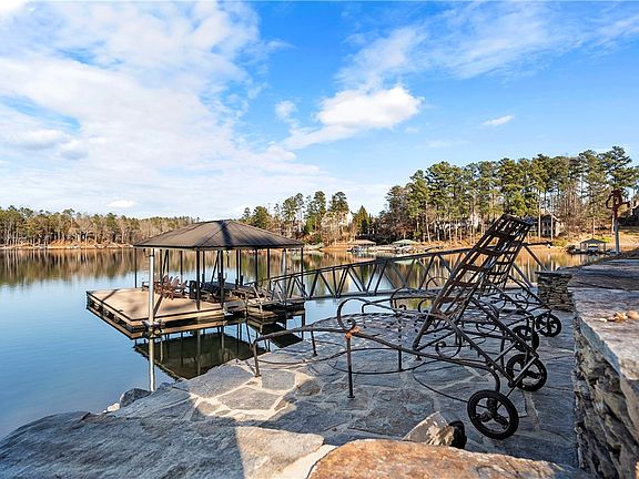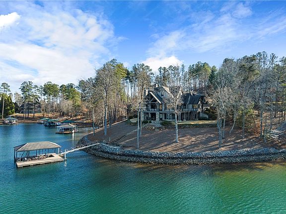 A one of a kind Lake Keowee waterfront home combining casual elegance with tranquil comfort. This mountain lake retreat is close to civilization yet feels like your sanctuary far away. Tucked peacefully on a point-style lot, this custom built home offers broad open water views from every room and spares no detail in its design. Quality shows from the start of the stone paver driveway all the way through to the path that leads merely steps from the private covered slip dock. 504 Sunset Cove Court, in the Lake Keowee established community of Waterside Crossing, features a gentle sloping yard with easy access to safe family lake fun. The protected open bay provides deep water at the dock area and easily accommodates all activities including boating, kayaking, paddleboards and every water enthusiast. It is easy to admire the architectural detail in this open, inviting floor plan. Wide plank floors, vaulted tongue and groove ceilings, exposed timber beams, soaring stone fireplace and a ship-lap accent frame the water views just outside. Step to the kitchen to find a comfortable work space for the most seasoned master chef, boasting a large eat-in kitchen island, top-of-the-line stainless appliances, double ovens, gas cooktop, two refrigerators and two over-sized pantries. Also on the main level are two suites. The spacious primary retreat hosts a corner stone fireplace and hearth framed by large picture windows offering unobstructed lake views. The retreat is further enhanced with a vanity seating area that leads to the primary bath with a jetted tub and separate shower, two spacious independent vanities, dual shower heads and immediate access to the walk in closet and main level laundry room. To finish out the main level is the house favorite, an expansive open air covered porch and wrap around deck. This additional entertaining area features a third main level stone fireplace with a built-in grill area overlooking beautiful Lake Keowee. An additional natural gas fed grilling area is just around the corner or can be easily accessed directly from the kitchen. On the terrace level find a secondary recreation room with plenty of space for gaming and theater space. This level offers no less in its design and detail than the main. Timber frame beams, a magnificent outdoor seating area, another floor to ceiling stone fireplace, second kitchenette, second laundry and three suites each with individual tile and granite baths. Even the over-sized three car garage is complete with details. You’ll find coated flooring, ample natural light, more storage and a private entrance to the caretaker or in-law suite. Don’t miss the secluded entrance through the garage to the bonus suite featuring a large full bath, living and sleeping area. Great for a private office, studio or bunk room. Meticulously designed to perfection in every aspect situated on 284’ of protected shoreline in a community deemed as one of Lake Keowee’s most prestigious areas to call home. Waterside Crossing offers a junior Olympic sized pool, clubhouse, lakeside fireplace/picnic pavilion, paved walking trails, playground, tennis/pickleball and much more. This one is about the setting... pictures don't do it justice!