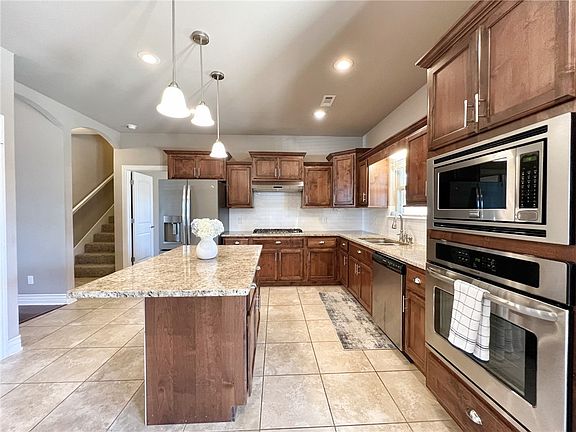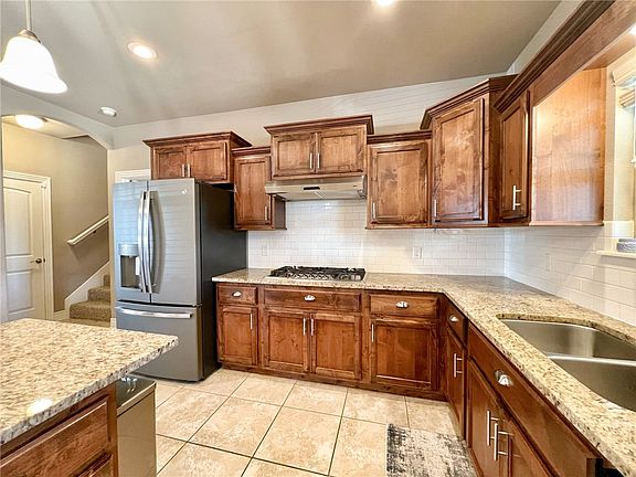 Beautiful home w/3-car garage on an oversized corner lot in a highly desirable neighborhood. The fully fenced backyard is large enough to add a pool, a garden & still have plenty of space for kids & dogs to play! Split floor plan has the main bedroom & 2 secondary bedrooms on main level w/ the 4th bedroom upstairs. The large living room features tall ceilings, wood floors, crown molding & double-sided gas fireplace between the living room & kitchen. At the heart of the home, the kitchen has an island, granite counters, wood cabinets, stainless steel appliances, gas cooktop, 2 pantries & eat-in dining space. In the primary bedroom suite, you will find a tray ceiling, 3 closets, dual sink vanity w/granite, jetted tub & large walk-in tile shower. Upstairs bedroom is large enough to be a bonus room & has a full ensuite bathroom. Laundry room has extra storage & linen closet. Right off the kitchen is a large, covered patio, perfect for entertaining. Neighborhood pool, playground, clubhouse. Close to schools & parks.