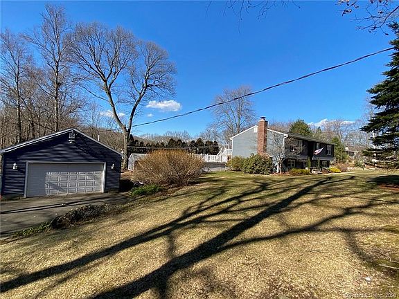 Set on a beautifully landscaped .66 acre corner lot across from Town of East Haven Land Trust property, this Raised Ranch style home is in move-in ready condition. It has been carefully & lovingly maintained by its original owners and it shows. The main level features an open floor plan with living room, dining room with access to oversized multi level deck, large remodeled kitchen with Corian counters & tile backsplash, hall bath, master bedroom with remodeled bath and two additional bedrooms. The lower level features a spacious family room with fireplace & walk out access to patio and the great back yard. Huge unfinished storage area that can be future additional living space. This home also has hardwood floors throughout much of the main level, central air conditioning, detached 30'x24' heated garage with car lift, partially fenced in back yard with two sheds and wonderful perennial gardens. Newer roof shingles. Replacement windows. Plenty of off street parking with two driveways. This home is the one you have been waiting for so don't delay or you will miss out.