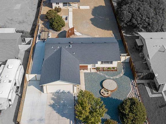 Immaculate & Move In Ready! Beautiful inside & out! Huge concrete pad for RV parking. Low maintenance landscaping front & back. Large stamped concrete patio w/handcrafted wooden wind breaks +it is shady in the afternoon! The storage shed w/covered patio is perfect for BBQ! Spacious greatroom opens to the dining & kitchen areas. Beautiful bamboo flooring in the greatroom, hallway & bedrooms! Ceiling fans in all bedrooms & dining area. The 2nd bedroom has a french door leading to the backyard patio.