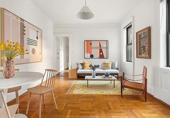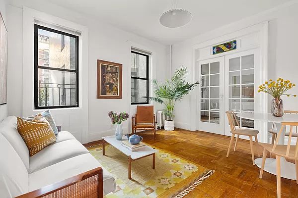 DEAL FELL THROUGH - BUYER LOST THEIR JOB Bright and quiet 2 bedroom located on one of the nicest tree-lined blocks in Morningside Heights. This charming north facing 4 room apartment is currently configured as a split 2 bedroom overlooking the building entrance on picturesque 111th Street. The inviting living room has 9'6" ceilings and two large windows providing great light throughout the day. Off the living room, through beautiful French doors with a stained glass transom, is the large 2nd bedroom. If 2 bedrooms are not needed, one can easily transform this room into a formal dining room or be combined with the living room to create a vast expanse for entertaining. The centrally located eat in kitchen is extremely large and has a lovely oversized window offering a cheerful cooking environment. Down the hall is a classic windowed prewar "black and white" tile bathroom meaning your guests will never have to traverse a bedroom. At the end of the hall is the primary bedroom which can easily accommodate a king sized bed and furniture. Original pre-war details, hardwood flooring, and ample closet space complete this warm and inviting home. This prewar coop has recently renovated the lobby and hallways, has a part time doorman (7am - 1am), live in super, central laundry room, bike room and storage (waitlist) and is pet friendly (1 pet per apartment). Conveniently located in Morningside Heights, you are a block from the 1 train, near the B/C trains, numerous bus lines (M104, M4, M11, M7, M60) and close to Columbia University, Riverside Park, numerous supermarkets (Westside Market, H Mart and Fairway) and the Cathedral of St. John the Divine. Reasonable co-op policies allow for pied a terres, guarantors, co-purchasing, and gifting on a case by case basis and subletting after 2 years of ownership! 75% financing permitted.