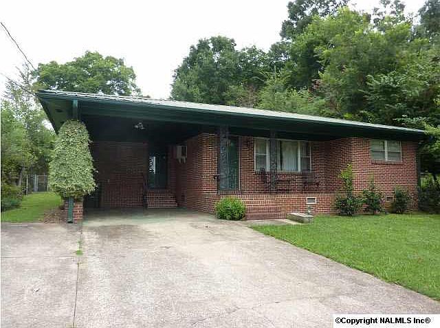BRICK HOME IN DOWNTOWN SCOTTSBORO HARDWOOD FLOORING, LARGE OPEN KITCHEN AND DINING AREA BUILT IN BAR STOOLS ON ISLAND 4 BEDROOMS OR 3 AND SEWING ROOM OR STUDY! 2 BATHS, COVERED CARPORT ATTACHED TO THE HOUSE LOTS OF ROOM!! METAL ROOF! ALSO HAS NEW WIRING. NEW PAINT, CARPET AND KITCHEN AND LAUNDRY FLOORING. MUST SEE!