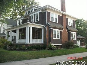 Unique home on street of Historic Homes. Character and Charm. beautiful, original woodwork. Tile foyer leadling to large liv.rm w/frpl. din.rm. w/newly remodeled kitchen and 23X10 family room w/windows seats. New windows and roof. Four large bedrooms up w/two full baths. Master bedroom, with full bath,and window seats. Large back yard extends to Auglaize river, a true park-like setting. Lg. deck w/hot tub also includes gazebo and partial fenced-in area for pets. This stately home has the feel of beauty combined with aristocracy of a past generation. Two-car detached garage and an additional 10x12 storage shed. 10x23 front porch for additional living space on those balmy summer nights. Close to schools and shopping. Large walk-up attic for all the storage you will ever need plus full basement. Hardwood floors. Two fireplaces-one gas down/up is decorative. OVER $60,000 IN TOTAL UPGRADES SINCE 2005 ROOF, WINDOWS, WIRING, PLUMBING, KITCHEN. Great neighbors! Hate to leave moving to TN