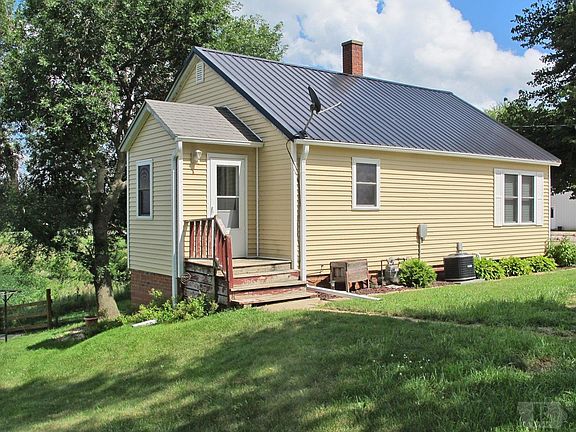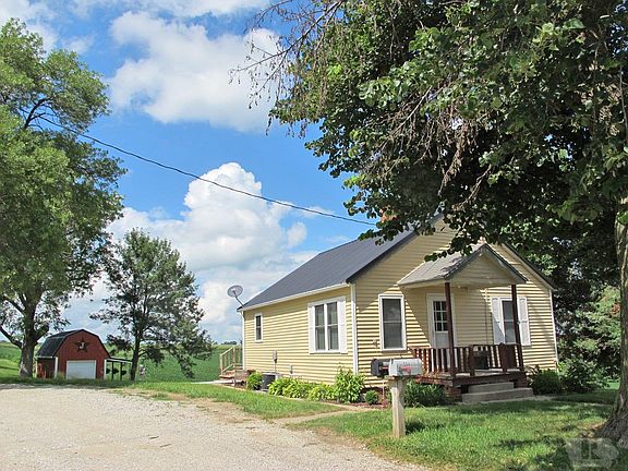 Many fine updates and Great Country View! 1-story, 2-bedroom home with walkout basement all on .43 of an acre in Kimballton, Iowa. Kitchen with stove, refrigerator an double stainless steel sink; nicely updated bath with walk-in ceramic tile shower, stool, vanity, and storage; both bedrooms and living room have oak floors; enclosed rear entry (5x7); updated metal roof, vinyl siding and windows; high efficiency natural gas furnace, and central air 2014. Very nice 12 x 21 pole building with concrete floor, overhead door, walk-in door, and covered 6 x 21 attached porch! Enjoy this home today!
