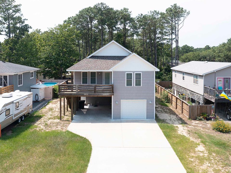 Looking for high returning investment? Airbnb income? Employee housing? A place to call your forever home? This house has endless opportunities partnered with the craftsmanship of one of the best builders of his time. Built in late 2017, this well appointed home has every detail you could ask for. Centrally located near everything that makes the Outer Banks amazing, this is a must see!  The lower level offers up a potential complete separate living quarters. Kitchenette & full bathroom with a large living space and bedroom all accessed by carport. The washer and dryer hookup is also on this level.   The top level has three additional bedrooms with large closets. There are also two bathrooms found on this level. The kitchen is bright and airy with lots of windows that highlight the granite & stainless steel appliances. The top level, open floor plan makes entertaining easy from the kitchen or the dining area.   Municipal sewer = no worries about having septic pumped!