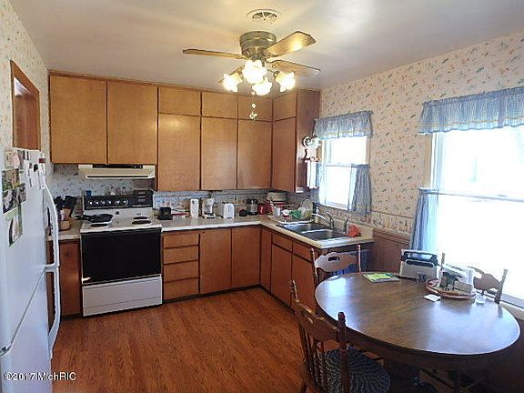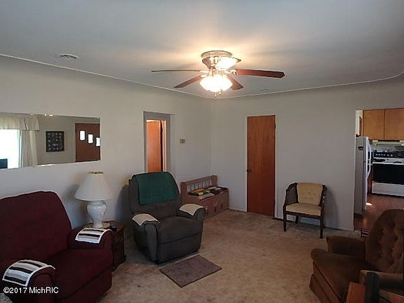 Just down the street from the middle school sits this cute 2 bedroom 1 bath bungalow sitting on 1 1/2 lots. Home has had many updates starting with windows, vinyl siding, 200 amp electric, furnace, bath, and a 2 year old roof. Hardwood floors under living room and bedroom carpeting. Kitchen has an eating area. Stove, refrigerator, water softener, washer and dryer are included in the sale. The oversized 2 car garage has 2 rooms in the back for storage or a workshop