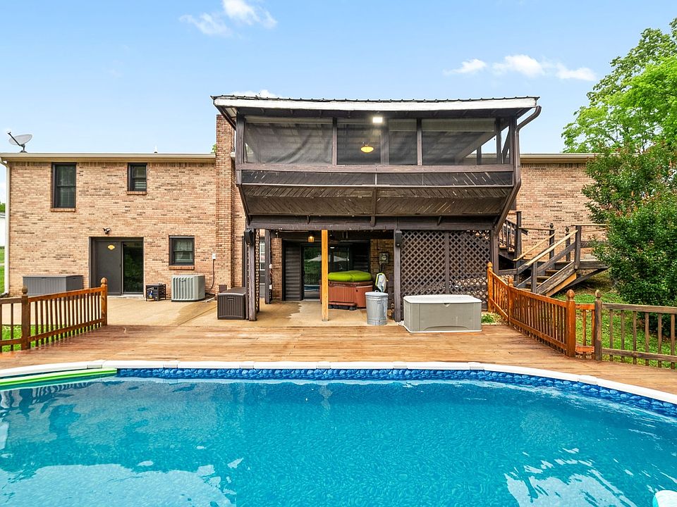 All BRICK completely renovated ranch home nestled on just under a 1- acre lot with mature luscious landscaping on quiet dead end road! All NEW Anderson windows and patio doors in 2021! A $39,000 upgrade!! Fresh agreeable grey paint throughout! Incredible Kitchen with upgraded Stainless appliances to include French door fridge and double oven! All bathrooms feature new vanities mirrors and lights! Massive space to expand in your walk out basement.. Features a bedroom, office, bonus room, full bath w/ new walk in tile shower w/ bench, and FULL KITCHEN! Perfect for a Mother In Law Suite or Teenager! Summer Ready backyard with a screened in covered back deck, above ground pool installed by Family Leisure in 2022, and hot tub that remains! Fully insulated, heated and cooled garage that's 30 x 26 which is perfect for that home gym no matter what the weather is! All this PLUS dual driveways perfect to park your trailer, extra vehicles, boat, or RV!! MUST SEE!