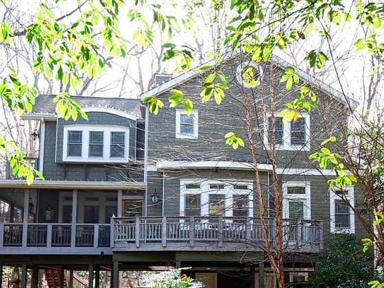 Designed by renowned Architect M.E. Terrell Meek, this home is nestled on a private nature reserve surrounded by lush landscaping. Relaxing comes easily on the wrap around screen porches, multiple balconies, and stone patio complete with fire pit. Main level boasts a separate banquet-sized dining room, living room with fireplace and barrel ceiling, beautiful custom kitchen and guest bedroom with full private bath. Upstairs features an office, bedroom with private bath and owner's suite with spa-like bathroom and balcony overlooking the lush surroundings. Architectural features include 13ft ceilings, crown molding, custom built-ins, gleaming hardwood floors, stunning marble and stone, skylights, and even an elevator for all three levels. Enjoy your own private nature reserve in the lap of luxury.