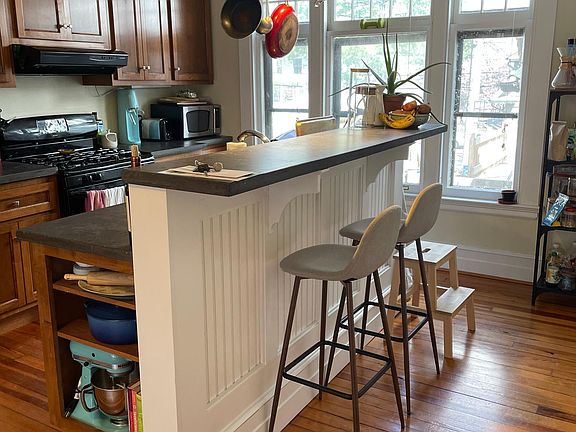 Bright, modern, well-maintained 2 bed/2 bath available for rent 8/1 in East Rock. Apartment includes two large bedrooms (one with huge ensuite bathroom), in-unit laundry and large storage room/pantry, and one off street parking spot. Kitchen is updated and has stone countertops, island, dishwasher, and garbage disposal. Central heating/air conditioning. Yale shuttle stop directly in front of apartment and short walk to East Rock restaurants, bars, SOM, Science Hill. 20-30 minute walk to downtown New Haven. Around the corner from St. Ronan St dog park. Owner pays for water; renters pay gas/electric/cable. Owner responsible for snow removal.