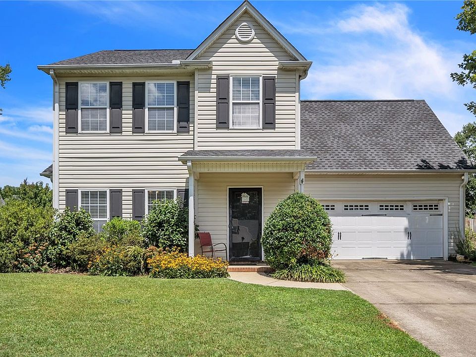 Welcome home to 504 Wild Wing Way! This spacious home offers 9ft ceiling on the main level with hardwood floors and lovley gas fireplace that grabs your attention as soon as you enter! The dining room and eat-in-kitchen offer views to the fenced in backyard with a wall of windows for lots of natural light!. There is plenty of storage in the kitchen with spacious wood cabinets. A half bath and laundry are conveniently located off of the kitchen. Upstairs you will find three bedrooms, including the master retreat that offers vaulted ceiling and large walk-in closet. Double doors open into the master bath ensuite with dual sinks, garden tub and separate shower! A highlight of this home is the bonus room that provides possiblites to make this space unique for you. This is home on a quiet culdesac and conveniently located to Highway 123 and I-85. Schedule a private showing today!
